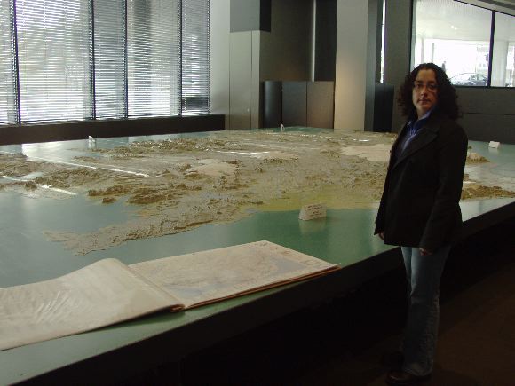 A topographic map of Iceland in Reykjavik City Hall, with Jess for scale. Iceland is tiny. Image Copyright © 2004 Jeremiah Blatz This work is licensed under a Creative Commons License.