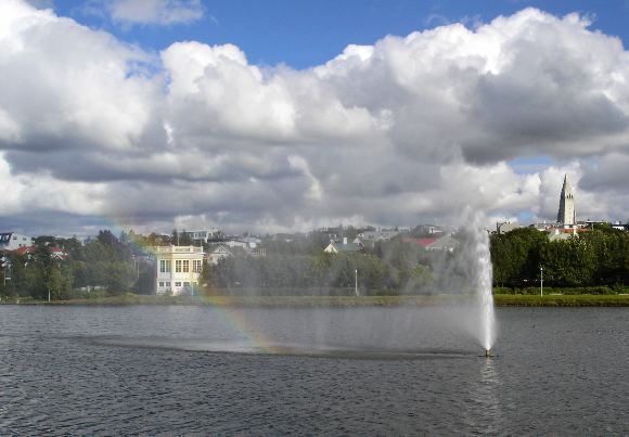 A rainbow in the mist from the Tjšrnin fountain. Image Copyright © 2004 Jessica Thompson Blatz, all rights reserved