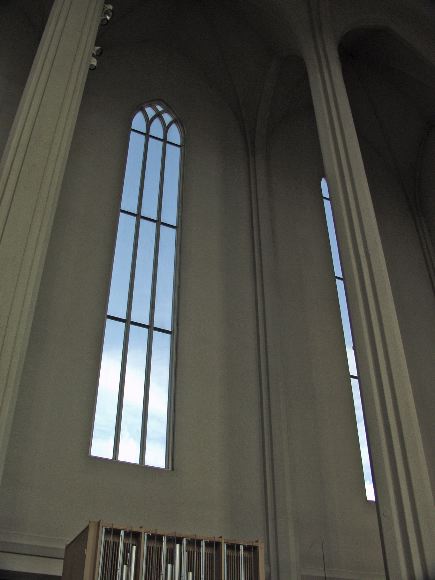 The stark, soaring windows of the Hallgrimskirkja suited its minimalist style. Image Copyright © 2004 Jeremiah Blatz This work is licensed under a Creative Commons License.