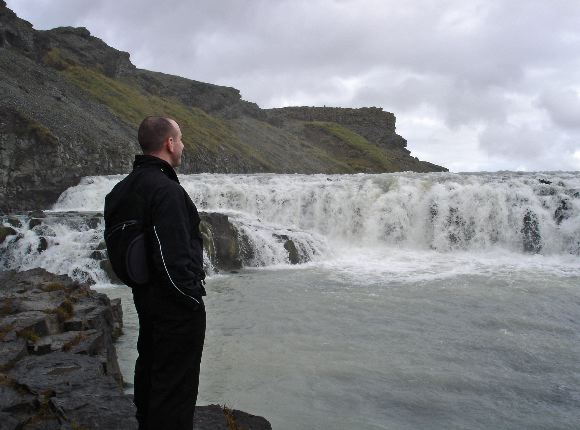 Jer, admiring the top of Gulfoss, on the Golden Circle tour. The path came right up to the edge of the falls, and it was hard to hear anything over the roar of the water. Image Copyright © 2004 Jessica Thompson Blatz, all rights reserved