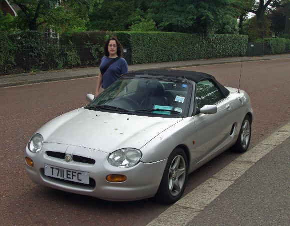 A cute little silver MG F, with Jess for scale. Image Copyright © 2005 Jeremiah Blatz This work is licensed under a Creative Commons License.