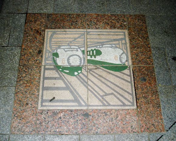 The tilework on the sidewalk announced our proximity to Tokyo's Ueno Station.