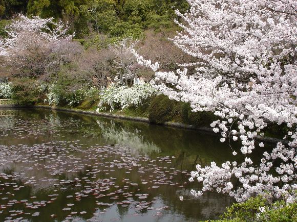 The floweing white bushes were especially striking next to the pink cherry trees shedding their petals into the pond at Ryoanji temple.