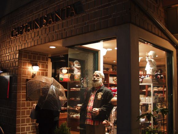 Jess reading the sign at Captain Santa, sportswear with an upbeat motivation message (which is conveyed in ungrammatical, somewhat perplexing Engrish). If you're looking for Santa Island, it's at the intersection of Engrish, retail, and Dr. Bronner.
